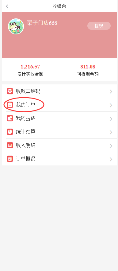 ②收银台订单