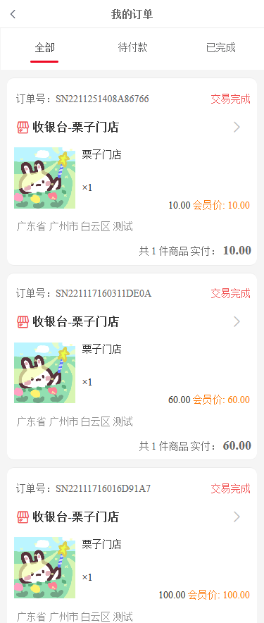 会员扫收银台二维码或点击收银台二维码进行支付的订单