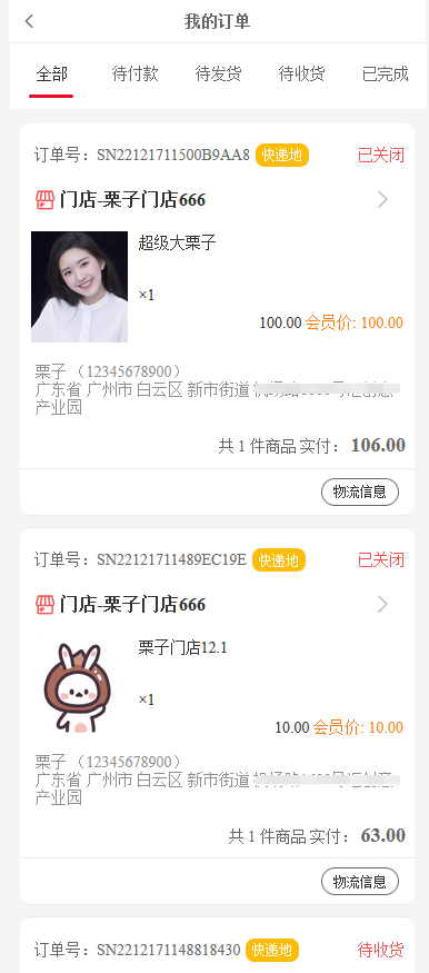 2、手机端订单显示
